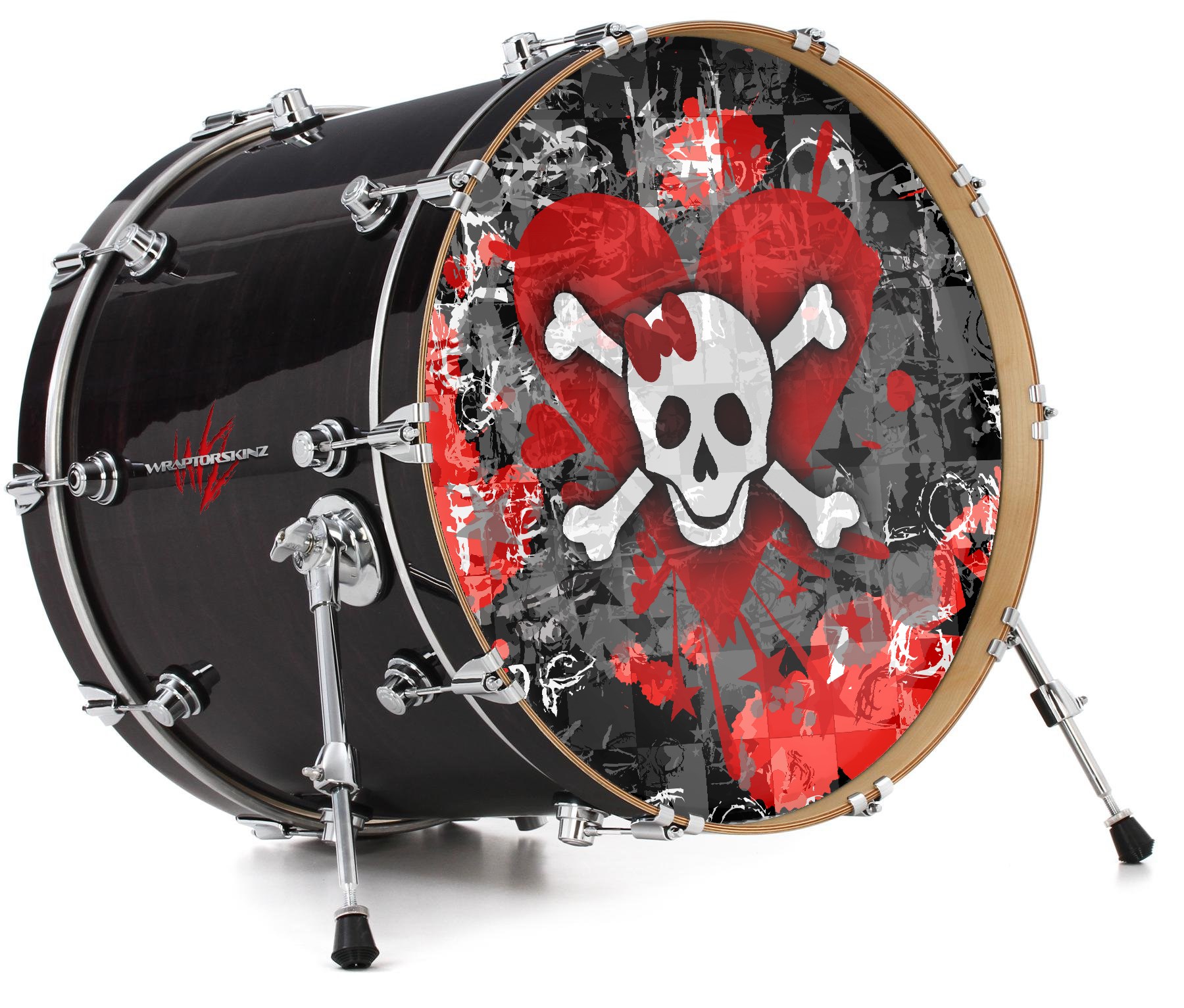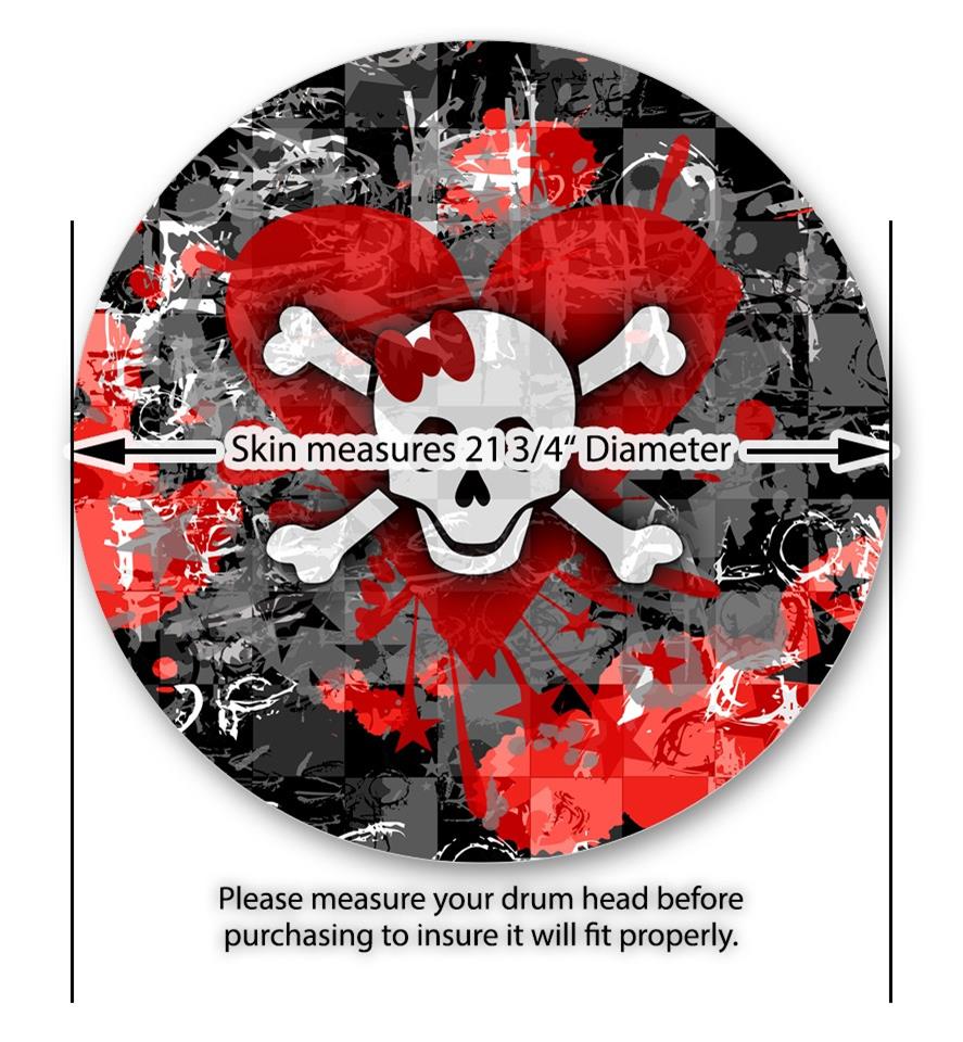 This design also available in other sizes. WraptorSkinz® skin wraps compatible with most kick drum heads. Printed using superb photo quality designs and vibrant colors printed with special fade resistant inks that last even in direct sun for years. WraptorSkinz are a composite three layer commercial grade materials vinyl. The bottom layer is a air release, grey block out removable adhesive that hides existing graphics on the drum head and is easily applied without air bubbles. The middle layer is a flexible vinyl printed with UV protected, fade resistant inks that deliver superb photo quality designs in vibrant colors. Finally, we bond a professional grade laminate over the entire skin adding a glossy protective finish.