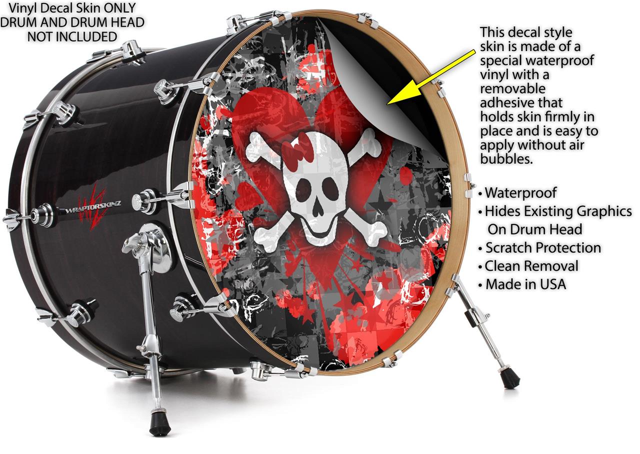Vinyl Decal Skin Wrap for 22" Bass Kick Drum Head Emo Skull Bones - DRUM HEAD NOT INCLUDED