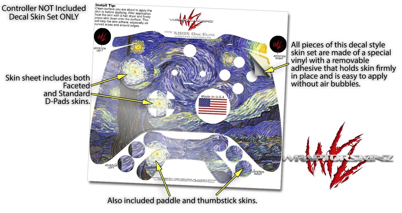 Decal Skin compatible with Microsoft XBOX One ELITE Wireless ControllerVincent Van Gogh Starry Night