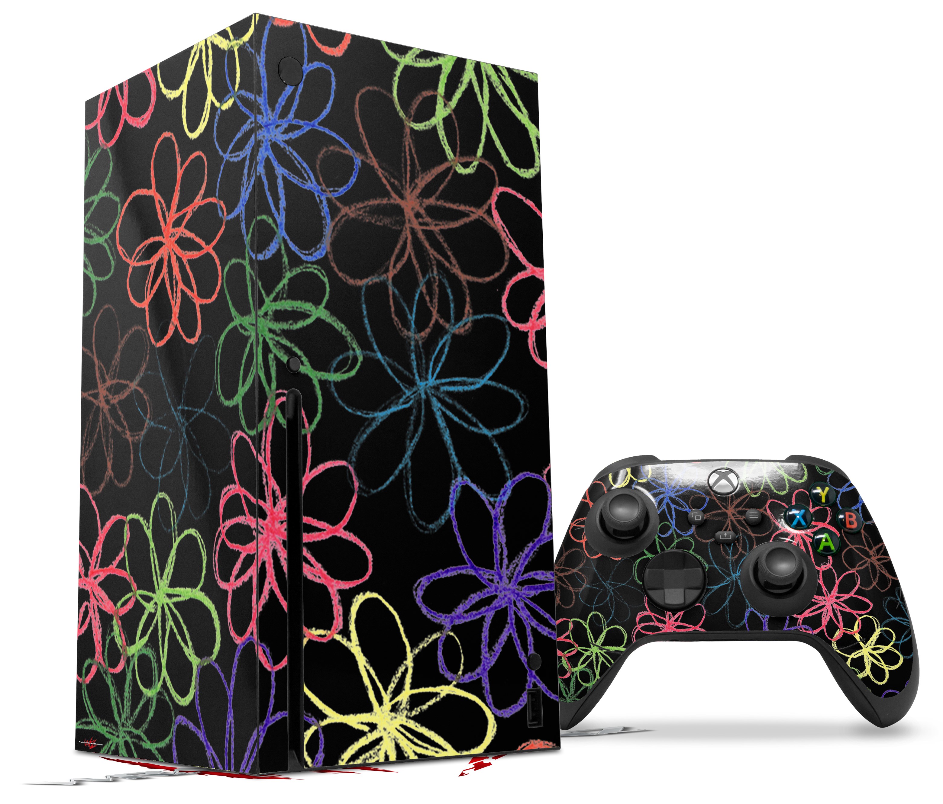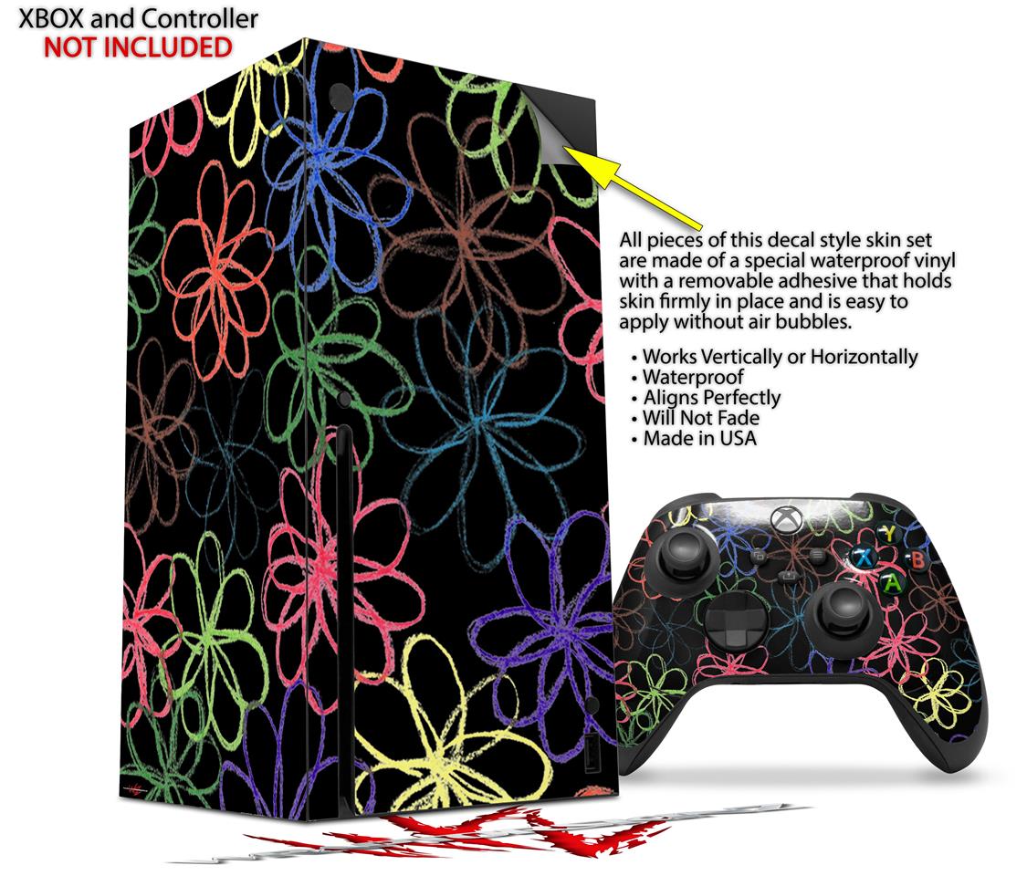 WraptorSkinz Skin Wrap compatible with the 2020 XBOX Series X Console and Controller Kearas Flowers on Black (XBOX NOT INCLUDED)