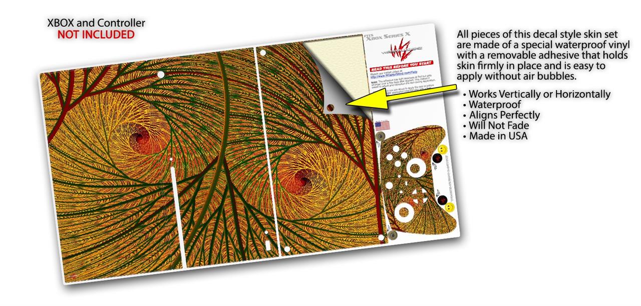 WraptorSkinz® skin wraps for the XBOX Series X gaming console and controller reelase November 2020 are printed using superb photo quality designs and vibrant colors printed with special fade resistant inks that last even in direct sun for years. WraptorSkinz are a composite of two layers of commercial grade materials. The bottom layer is a soft, flexible vinyl with a special removable adhesive that is easily positioned, applied without air bubbles. Next we print the bottom layer with UV protected, fade resistant inks that deliver superb photo quality designs in vibrant colors. Last, we bond a professional grade laminate over the entire skin adding a glossy protective finish. This product is not affiliated with or endorsed by Microsoft or the XBOX brand.
