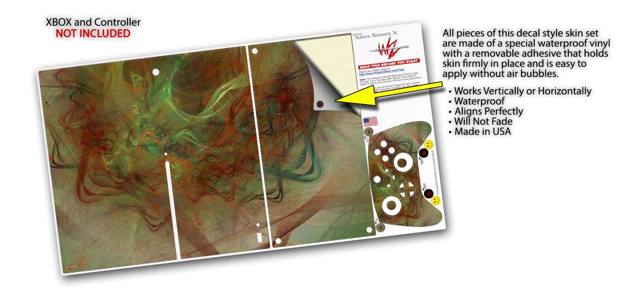 WraptorSkinz® skin wraps for the XBOX Series X gaming console and controller reelase November 2020 are printed using superb photo quality designs and vibrant colors printed with special fade resistant inks that last even in direct sun for years. WraptorSkinz are a composite of two layers of commercial grade materials. The bottom layer is a soft, flexible vinyl with a special removable adhesive that is easily positioned, applied without air bubbles. Next we print the bottom layer with UV protected, fade resistant inks that deliver superb photo quality designs in vibrant colors. Last, we bond a professional grade laminate over the entire skin adding a glossy protective finish. This product is not affiliated with or endorsed by Microsoft or the XBOX brand.