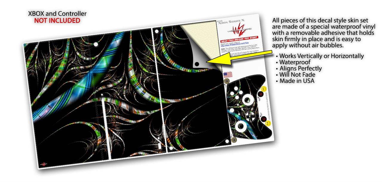 WraptorSkinz® skin wraps for the XBOX Series X gaming console and controller reelase November 2020 are printed using superb photo quality designs and vibrant colors printed with special fade resistant inks that last even in direct sun for years. WraptorSkinz are a composite of two layers of commercial grade materials. The bottom layer is a soft, flexible vinyl with a special removable adhesive that is easily positioned, applied without air bubbles. Next we print the bottom layer with UV protected, fade resistant inks that deliver superb photo quality designs in vibrant colors. Last, we bond a professional grade laminate over the entire skin adding a glossy protective finish. This product is not affiliated with or endorsed by Microsoft or the XBOX brand.
