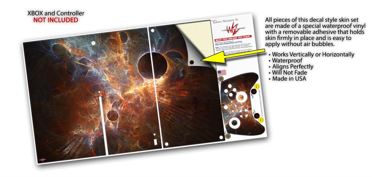 WraptorSkinz® skin wraps for the XBOX Series X gaming console and controller reelase November 2020 are printed using superb photo quality designs and vibrant colors printed with special fade resistant inks that last even in direct sun for years. WraptorSkinz are a composite of two layers of commercial grade materials. The bottom layer is a soft, flexible vinyl with a special removable adhesive that is easily positioned, applied without air bubbles. Next we print the bottom layer with UV protected, fade resistant inks that deliver superb photo quality designs in vibrant colors. Last, we bond a professional grade laminate over the entire skin adding a glossy protective finish. This product is not affiliated with or endorsed by Microsoft or the XBOX brand.