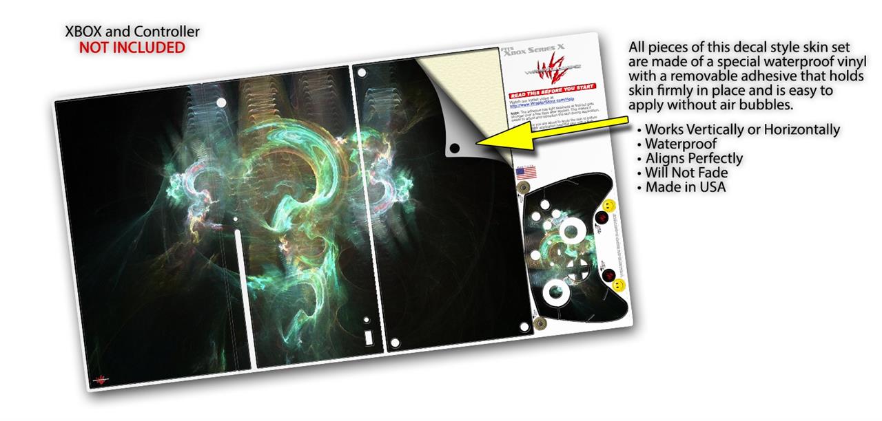 WraptorSkinz® skin wraps for the XBOX Series X gaming console and controller reelase November 2020 are printed using superb photo quality designs and vibrant colors printed with special fade resistant inks that last even in direct sun for years. WraptorSkinz are a composite of two layers of commercial grade materials. The bottom layer is a soft, flexible vinyl with a special removable adhesive that is easily positioned, applied without air bubbles. Next we print the bottom layer with UV protected, fade resistant inks that deliver superb photo quality designs in vibrant colors. Last, we bond a professional grade laminate over the entire skin adding a glossy protective finish. This product is not affiliated with or endorsed by Microsoft or the XBOX brand.