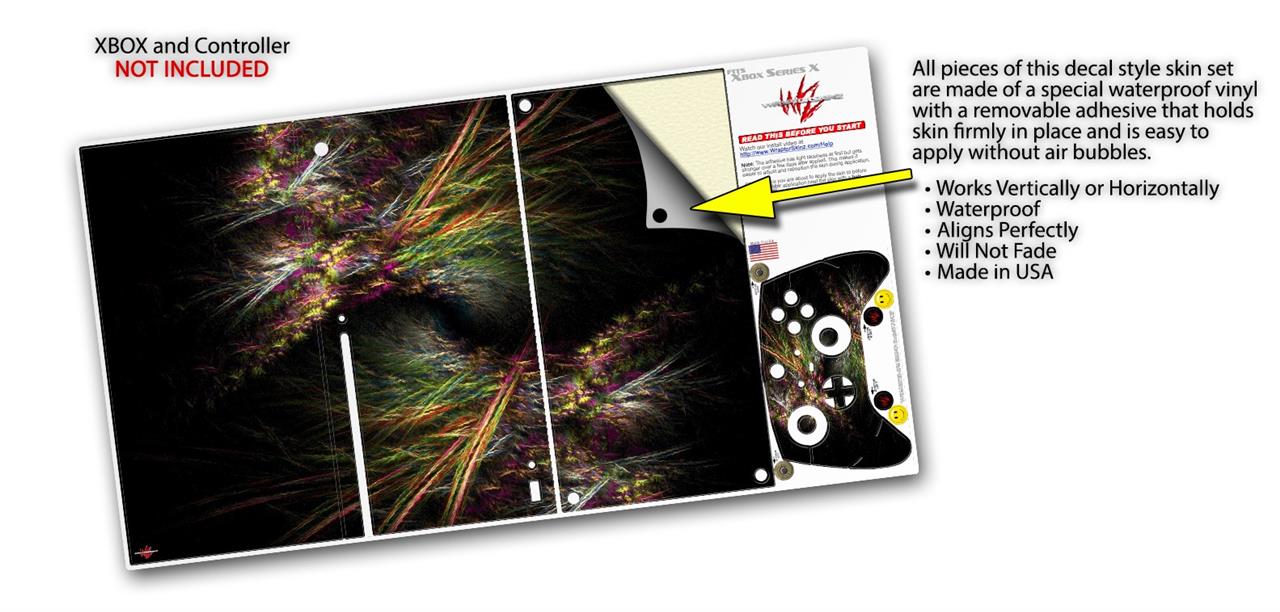 WraptorSkinz® skin wraps for the XBOX Series X gaming console and controller reelase November 2020 are printed using superb photo quality designs and vibrant colors printed with special fade resistant inks that last even in direct sun for years. WraptorSkinz are a composite of two layers of commercial grade materials. The bottom layer is a soft, flexible vinyl with a special removable adhesive that is easily positioned, applied without air bubbles. Next we print the bottom layer with UV protected, fade resistant inks that deliver superb photo quality designs in vibrant colors. Last, we bond a professional grade laminate over the entire skin adding a glossy protective finish. This product is not affiliated with or endorsed by Microsoft or the XBOX brand.