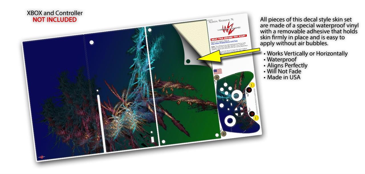 WraptorSkinz® skin wraps for the XBOX Series X gaming console and controller reelase November 2020 are printed using superb photo quality designs and vibrant colors printed with special fade resistant inks that last even in direct sun for years. WraptorSkinz are a composite of two layers of commercial grade materials. The bottom layer is a soft, flexible vinyl with a special removable adhesive that is easily positioned, applied without air bubbles. Next we print the bottom layer with UV protected, fade resistant inks that deliver superb photo quality designs in vibrant colors. Last, we bond a professional grade laminate over the entire skin adding a glossy protective finish. This product is not affiliated with or endorsed by Microsoft or the XBOX brand.