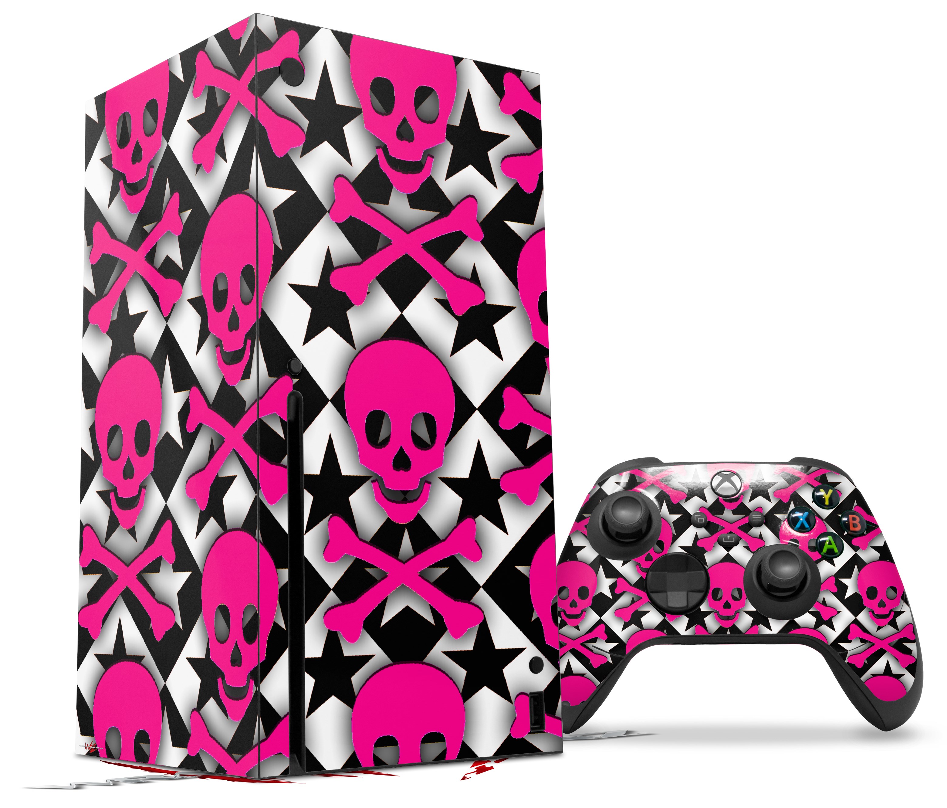 WraptorSkinz Skin Wrap compatible with the 2020 XBOX Series X Console and Controller Pink Skulls and Stars (XBOX NOT INCLUDED)