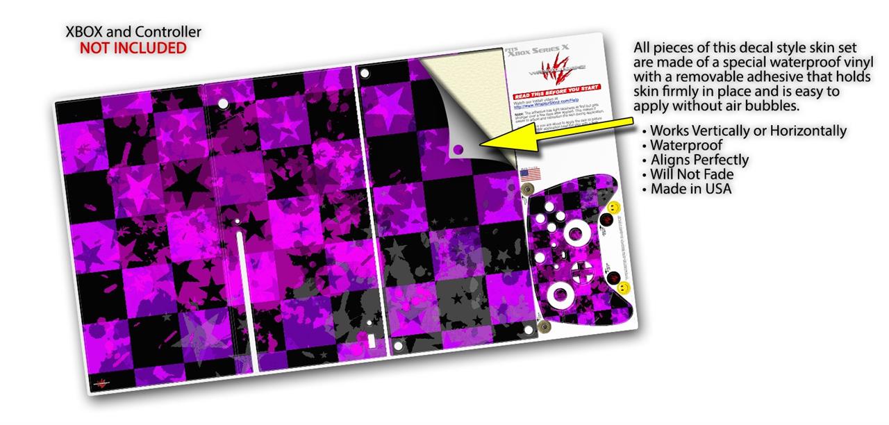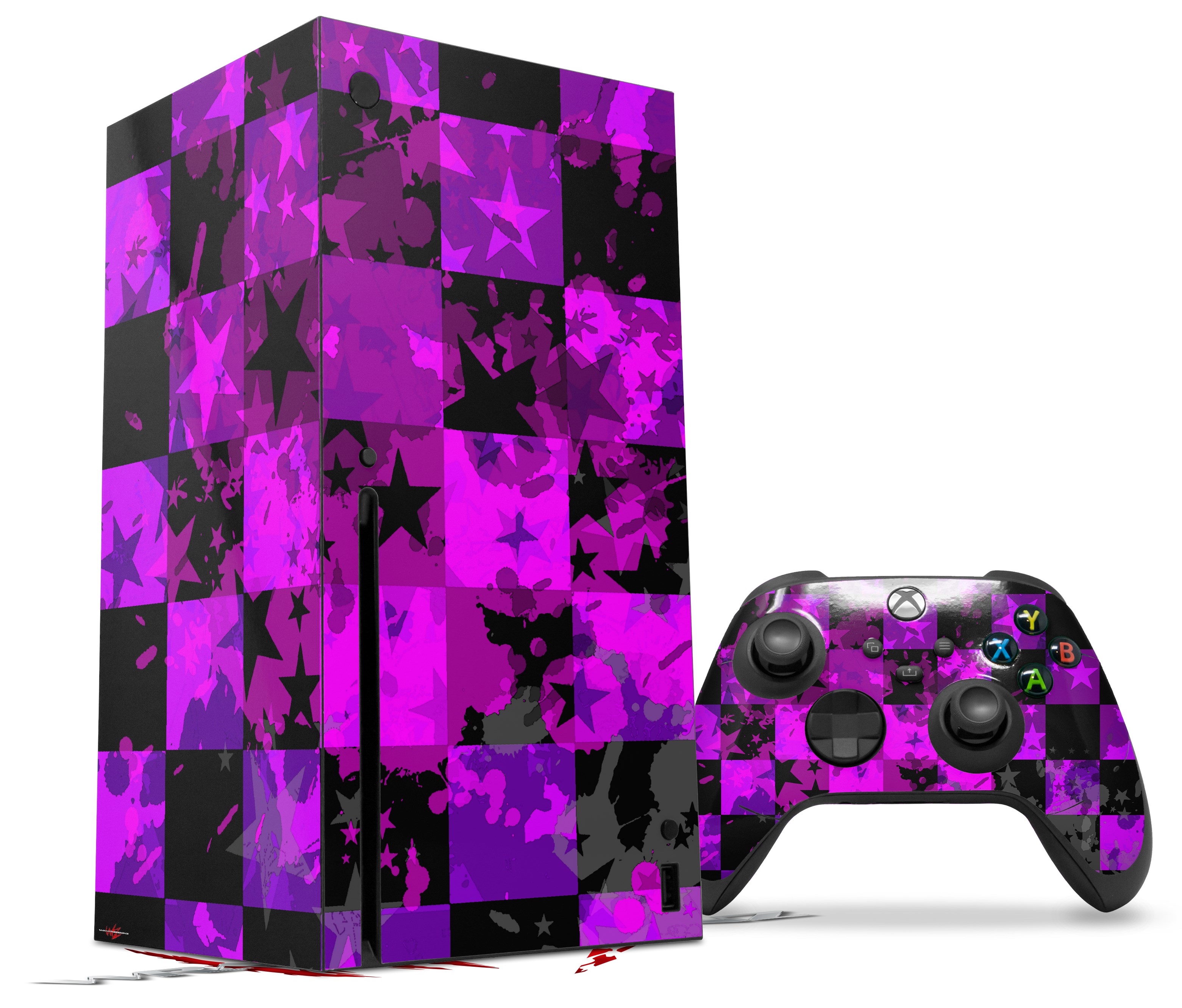 WraptorSkinz Skin Wrap compatible with the 2020 XBOX Series X Console and Controller Purple Star Checkerboard (XBOX NOT INCLUDED)