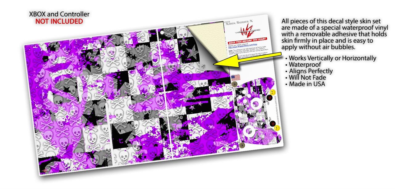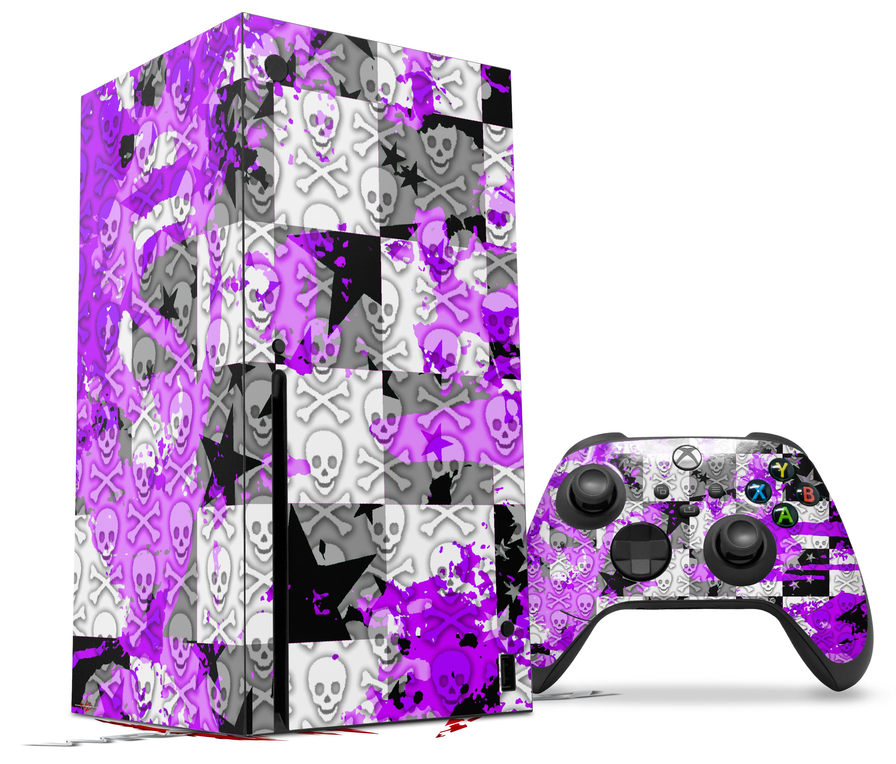 WraptorSkinz Skin Wrap compatible with the 2020 XBOX Series X Console and Controller Purple Checker Skull Splatter (XBOX NOT INCLUDED)