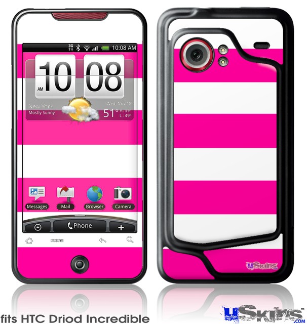 HTC Droid Incredible Skin - Psycho Stripes Hot Pink and White