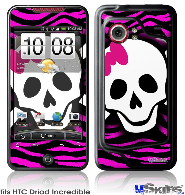 HTC Droid Incredible Skin - Pink Zebra Skull