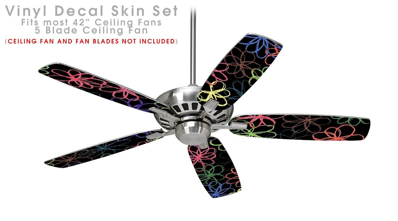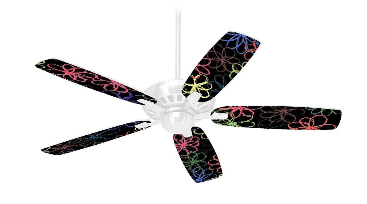 Kearas Flowers on Black - Ceiling Fan Skin Kit fits most 42 inch fans (FAN and BLADES SOLD SEPARATELY)