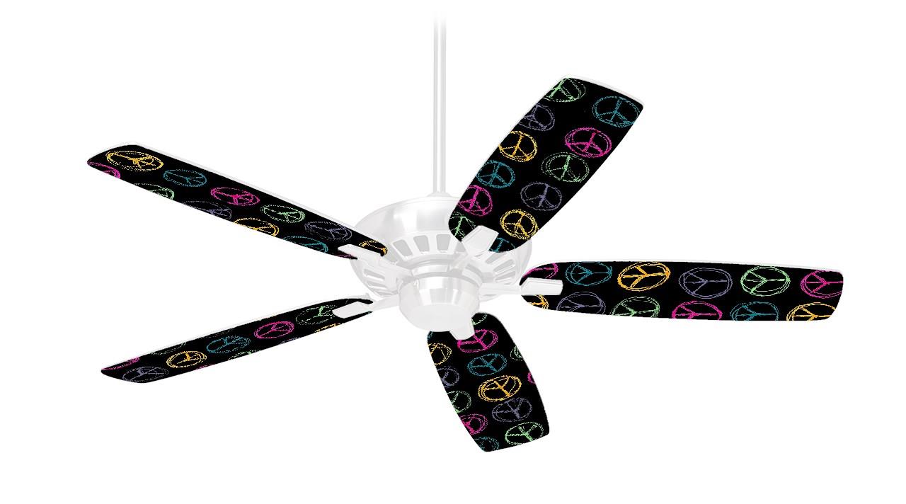 Kearas Peace Signs Black - Ceiling Fan Skin Kit fits most 42 inch fans (FAN and BLADES SOLD SEPARATELY)