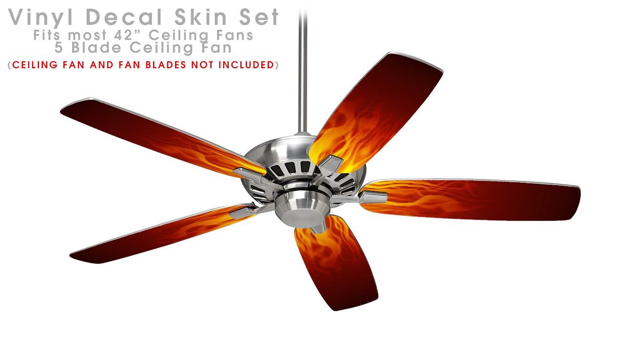 Fire Flames on Black - Ceiling Fan Skin Kit fits most 42 inch fans (FAN and BLADES SOLD SEPARATELY)