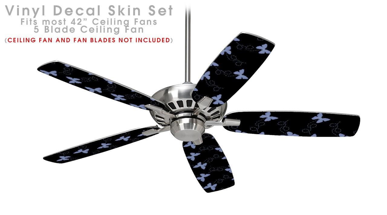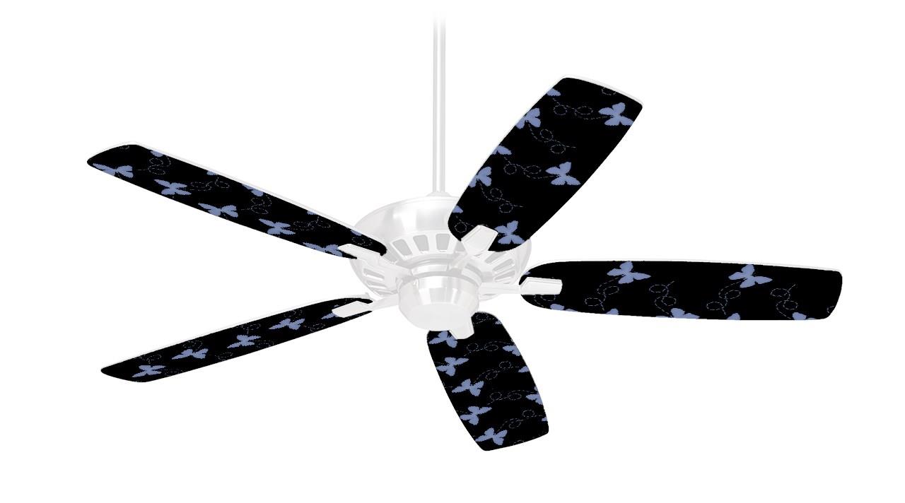 Pastel Butterflies Blue on Black - Ceiling Fan Skin Kit fits most 42 inch fans (FAN and BLADES SOLD SEPARATELY)