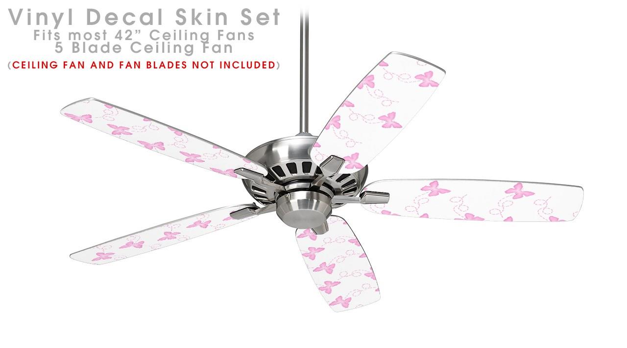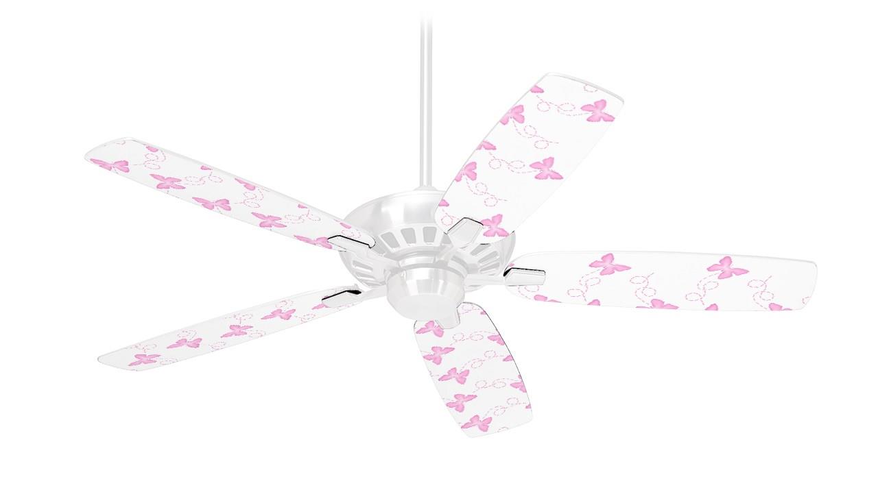 Pastel Butterflies Pink on White - Ceiling Fan Skin Kit fits most 42 inch fans (FAN and BLADES SOLD SEPARATELY)