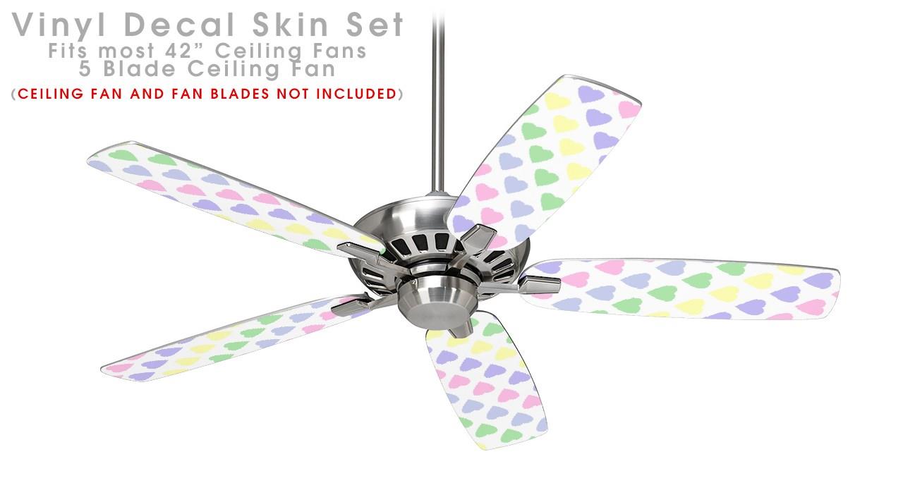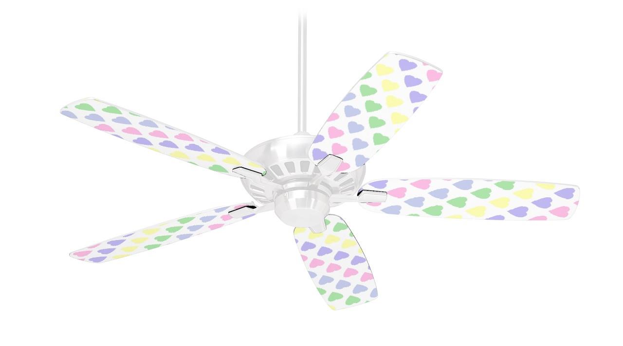 Pastel Hearts on White - Ceiling Fan Skin Kit fits most 42 inch fans (FAN and BLADES SOLD SEPARATELY)
