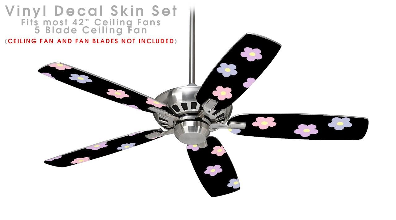 Pastel Flowers on Black - Ceiling Fan Skin Kit fits most 42 inch fans (FAN and BLADES SOLD SEPARATELY)