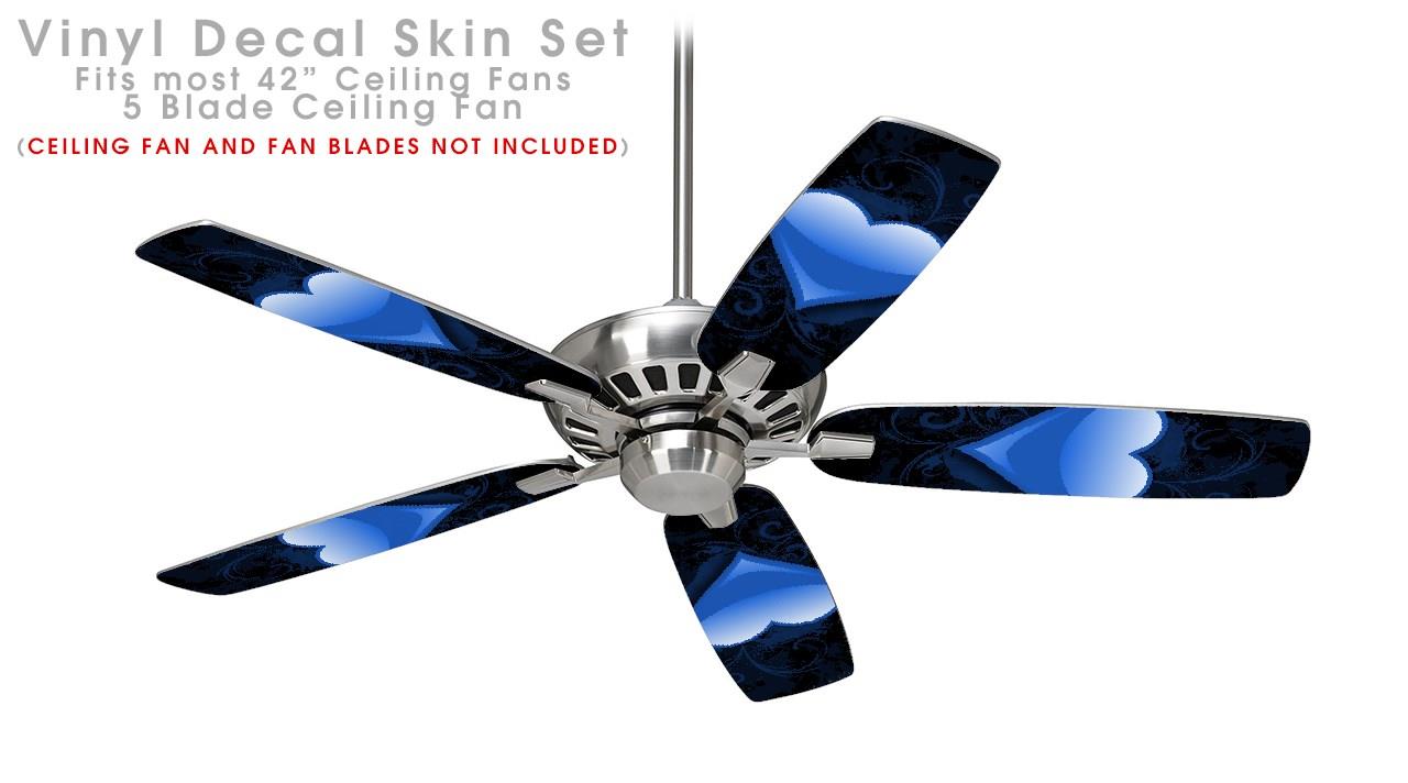 Glass Heart Grunge Blue - Ceiling Fan Skin Kit fits most 42 inch fans (FAN and BLADES SOLD SEPARATELY)