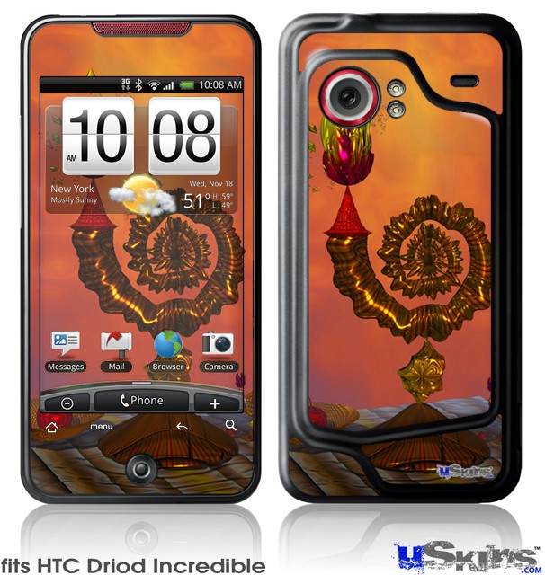 • Skin covers front and back of HTC Droid Incredible cell phone.