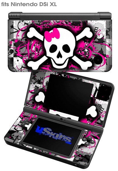 Splatter Girly Skull - Decal Style Skin fits Nintendo DSi XL (DSi SOLD SEPARATELY)