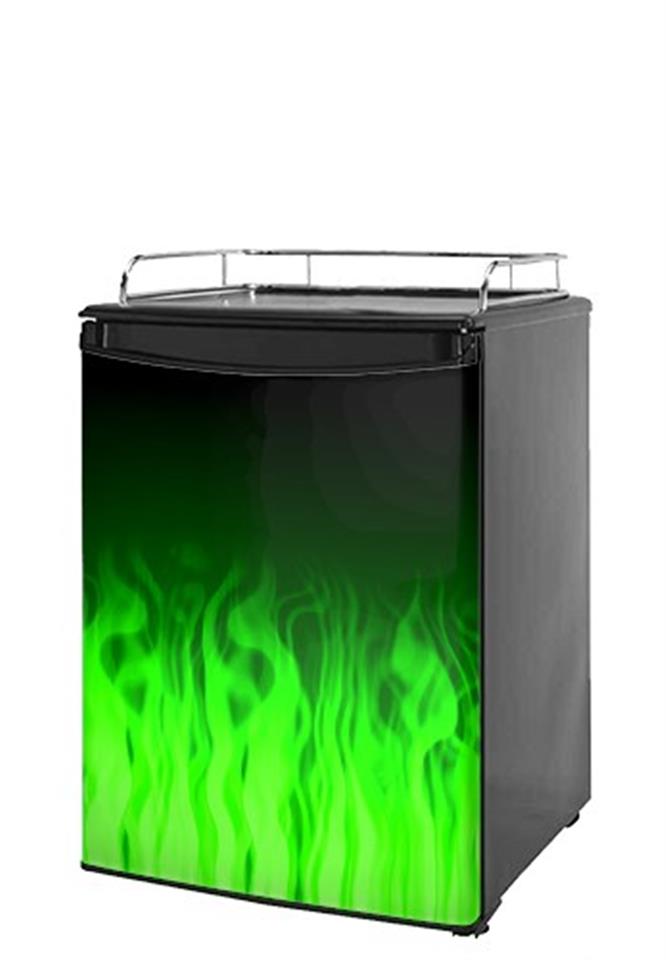 Kegerator Skin - Fire Flames Green (fits medium sized dorm fridge and kegerators)