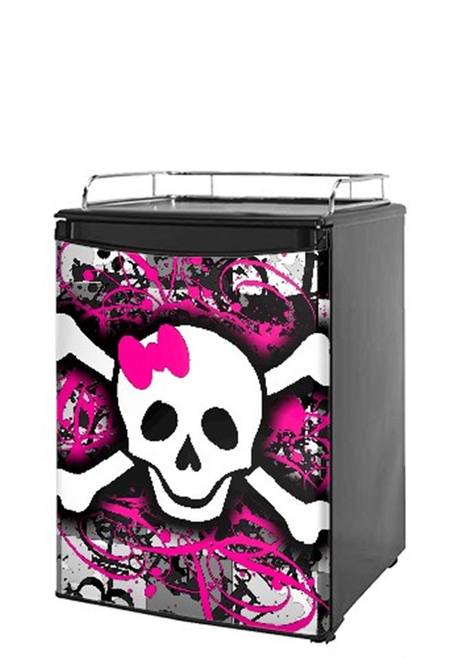Kegerator Skin - Splatter Girly Skull (fits medium sized dorm fridge and kegerators)