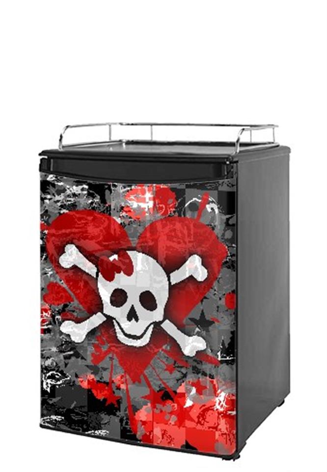Kegerator Skin - Emo Skull Bones (fits medium sized dorm fridge and kegerators)