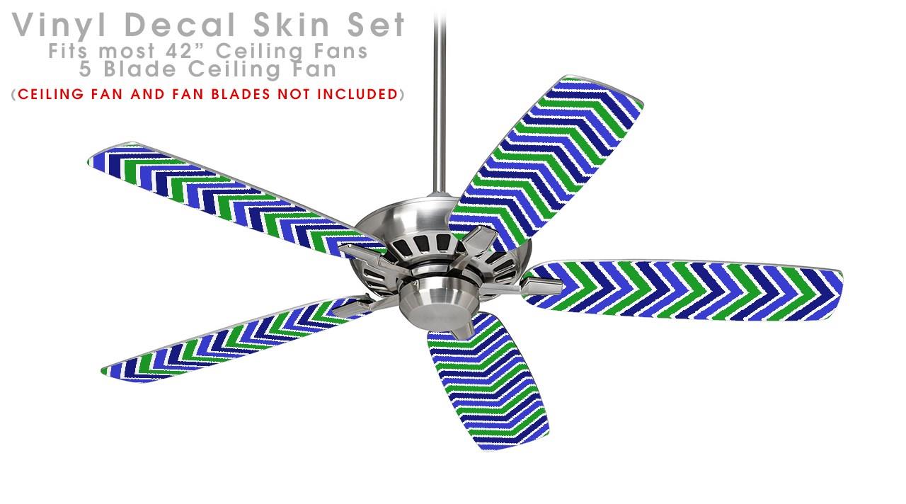Zig Zag Blue Green - Ceiling Fan Skin Kit fits most 42 inch fans (FAN and BLADES SOLD SEPARATELY)