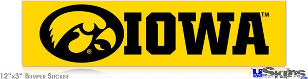 12x3 Bumper Sticker (Permanent) - Iowa Hawkeyes Tigerhawk Oval 03 Black on Gold Horizontal