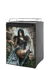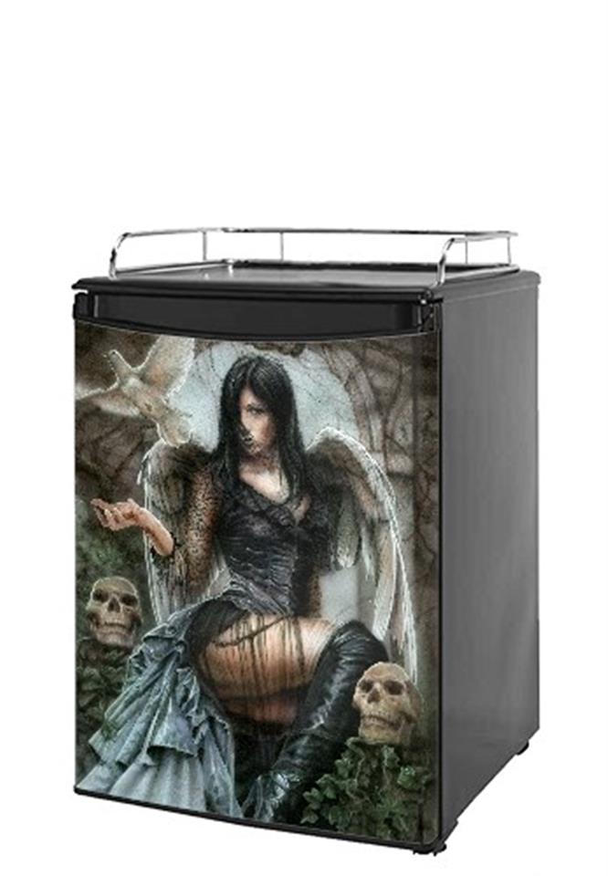 Installation Instructions: Required Tools: Sharp Utility Knife. Our refrigerator skins are made so that one size fits most medium size dorm and keg fridges. This means the skins are slightly larger then most medium size dorm and keg fridges and will require trimming to fit. This refrigerator skin wrap measures 28 3/4in x 41in. Please measure your fridge door to make sure this skin will cover not only the face of the door but wrap around the sides as well. uSkinsTM self adhering vinyl skins wrap. Our skins are a composite of layered commercial grade vinyls. The bottom layer is a soft, flexible vinyl with a special removable adhesive that is easily positioned, applied without air bubbles, and effortlessly removed without leaving a sticky residue. uSkins are printed with the latest in UV protected inks that resist fading for up to 3 years even in direct sunlight. Finally we bond a professional grade laminate over the entire skin adding a professional glossy protective finish.