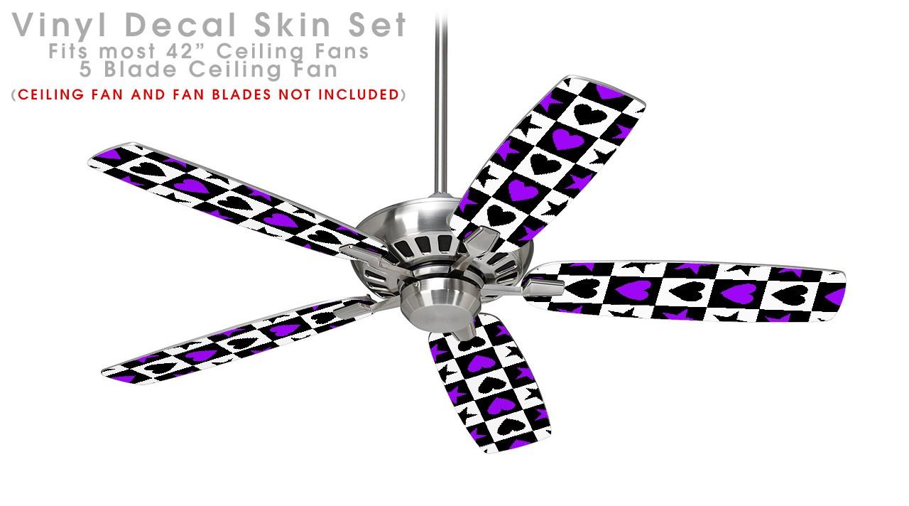 Purple Hearts And Stars - Ceiling Fan Skin Kit fits most 42 inch fans (FAN and BLADES SOLD SEPARATELY)