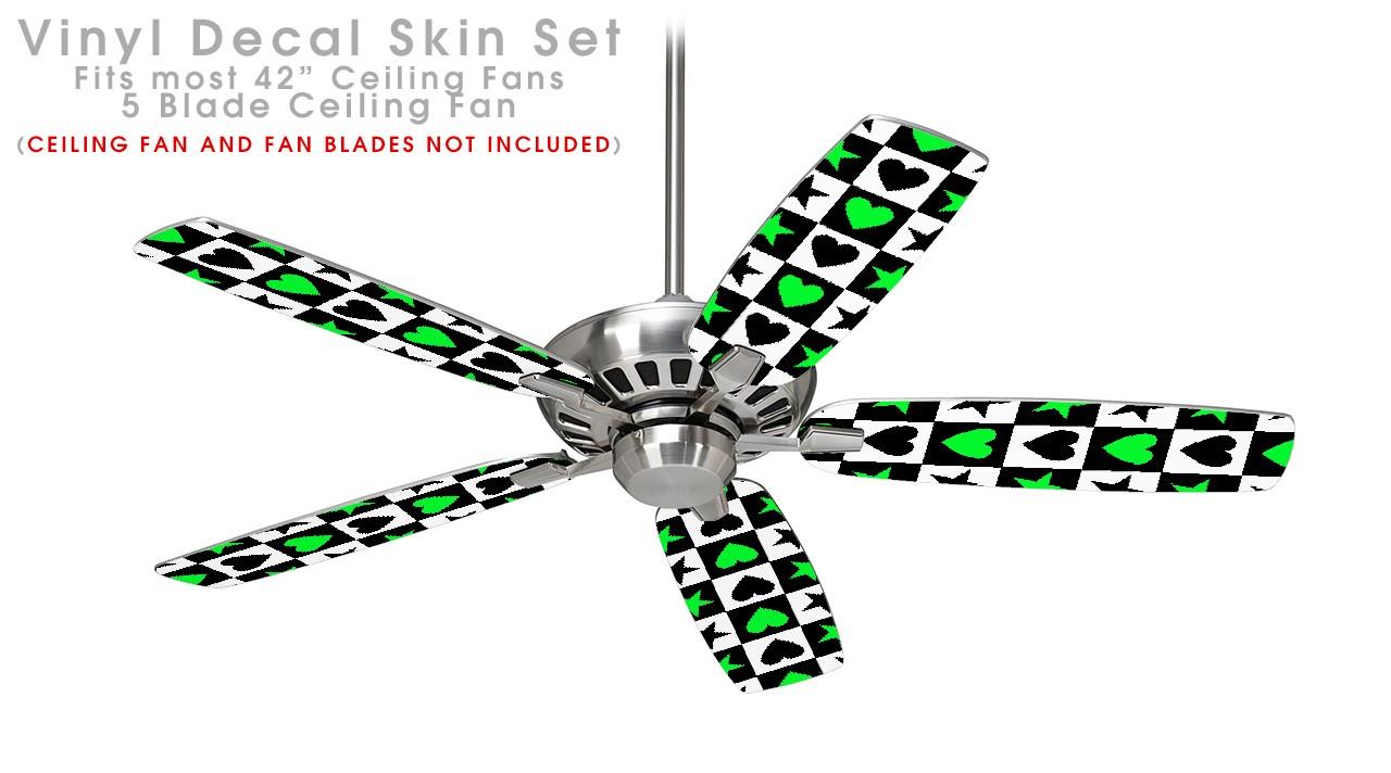 Hearts And Stars Green - Ceiling Fan Skin Kit fits most 42 inch fans (FAN and BLADES SOLD SEPARATELY)