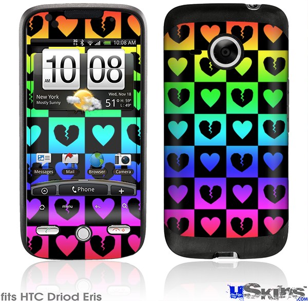 HTC Droid Eris Skin - Love Heart Checkers Rainbow