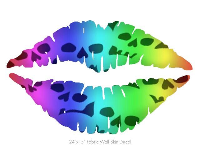 Rainbow Skull Collection - Kissing Lips Fabric Wall Skin Decal measures 24x15 inches