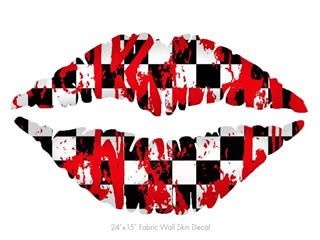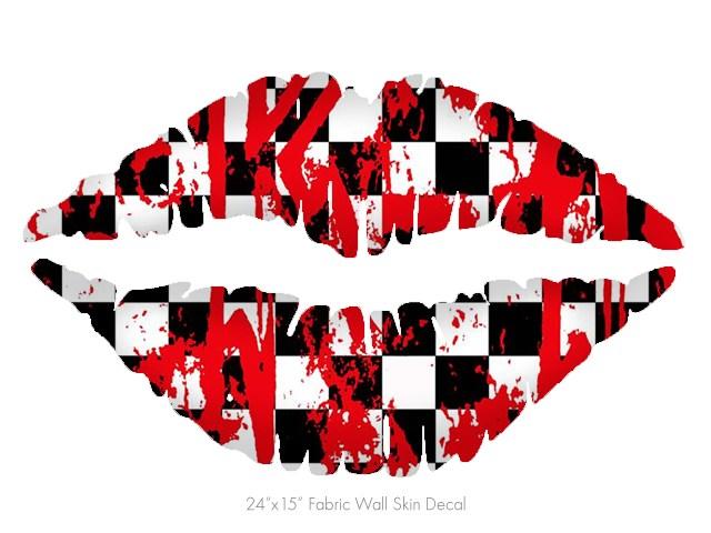 Checkerboard Splatter - Kissing Lips Fabric Wall Skin Decal measures 24x15 inches