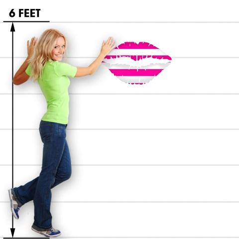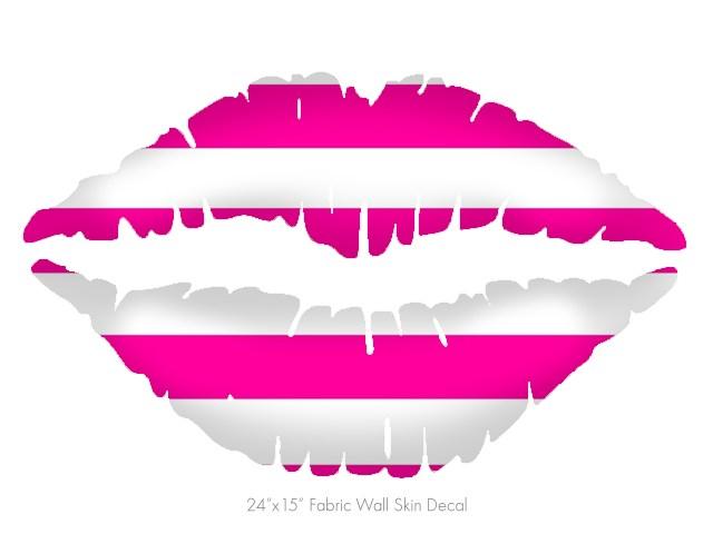Psycho Stripes Hot Pink and White - Kissing Lips Fabric Wall Skin Decal measures 24x15 inches