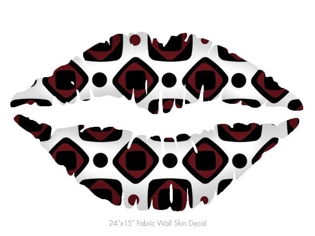 Red And Black Squared - Kissing Lips Fabric Wall Skin Decal measures 24x15 inches