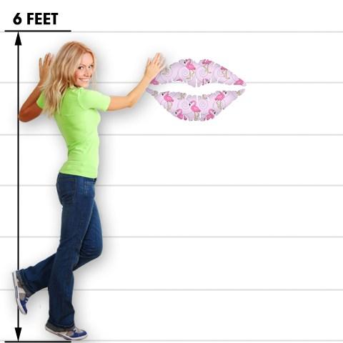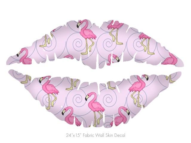 Flamingos on Pink - Kissing Lips Fabric Wall Skin Decal measures 24x15 inches