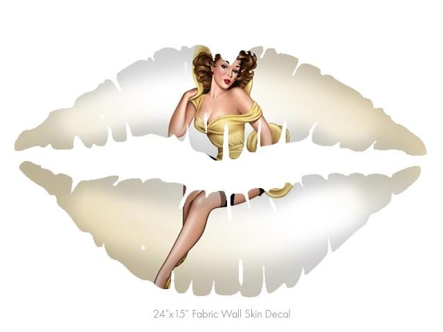 Rose Pin Up Girl - Kissing Lips Fabric Wall Skin Decal measures 24x15 inches