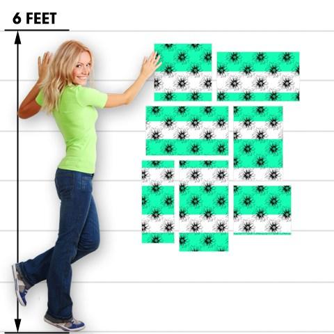 Kearas Daisies Stripe Sea Foam - 7 Piece Fabric Peel and Stick Wall Skin Art (50x38 inches)