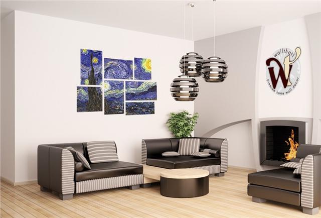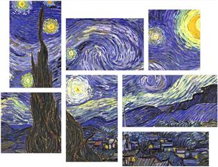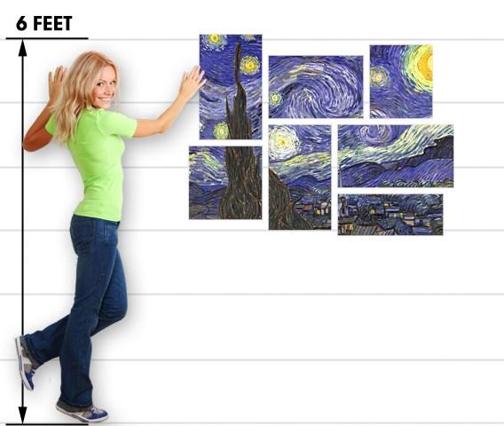 Vincent Van Gogh Starry Night - 7 Piece Fabric Peel and Stick Wall Skin Art (50x38 inches)