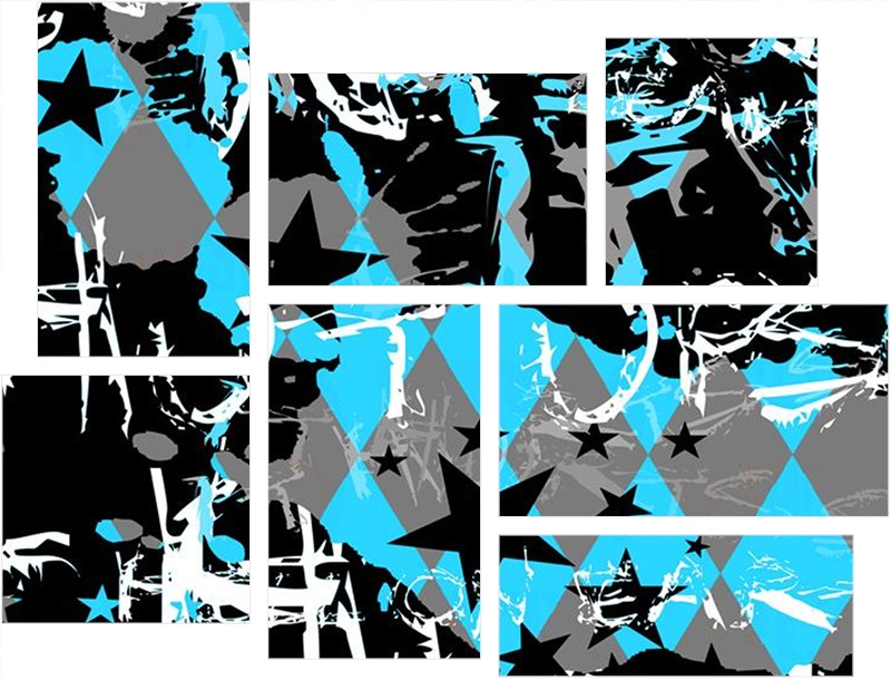 SceneKid Blue - 7 Piece Fabric Peel and Stick Wall Skin Art (50x38 inches)