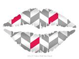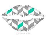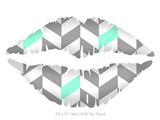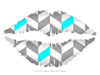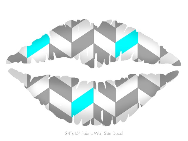 Chevrons Gray And Aqua - Kissing Lips Fabric Wall Skin Decal measures 24x15 inches