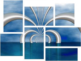 Waterworld - 7 Piece Fabric Peel and Stick Wall Skin Art (50x38 inches)
