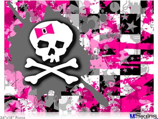 Poster 24"x18" - Girly Pink Bow Skull