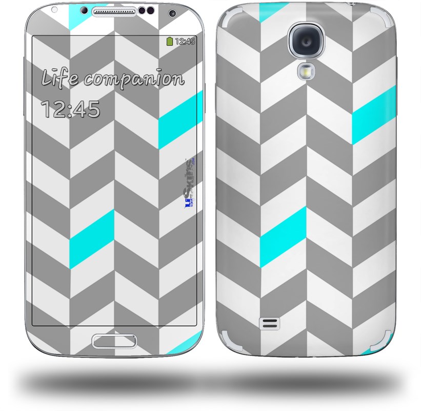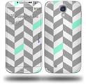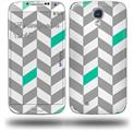 Chevrons Gray And Aqua - Decal Style Skin (fits Samsung Galaxy S IV S4)