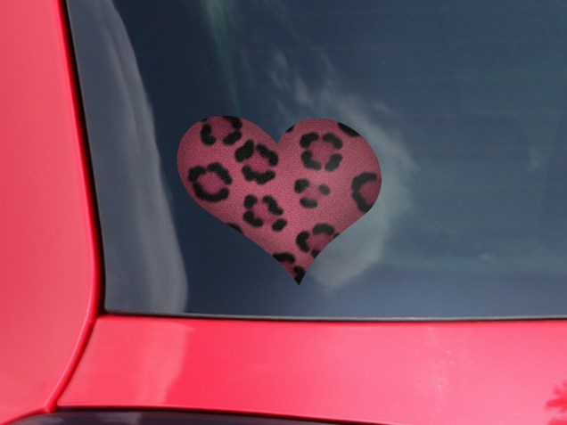 Leopard Skin Pink - I Heart Love Car Window Decal 6.5 x 5.5 inches
