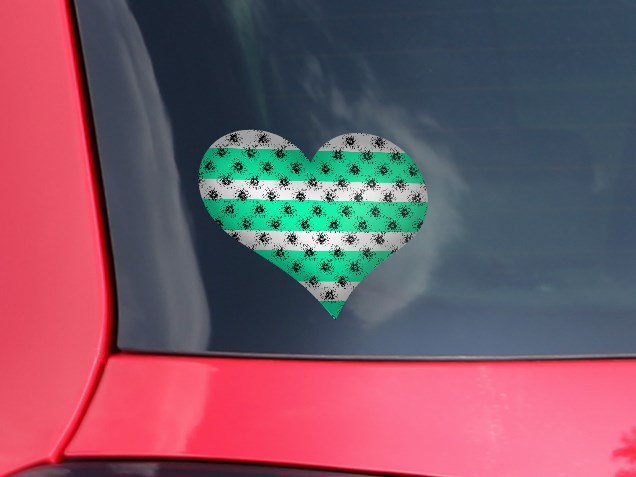 Kearas Daisies Stripe Sea Foam - I Heart Love Car Window Decal 6.5 x 5.5 inches
